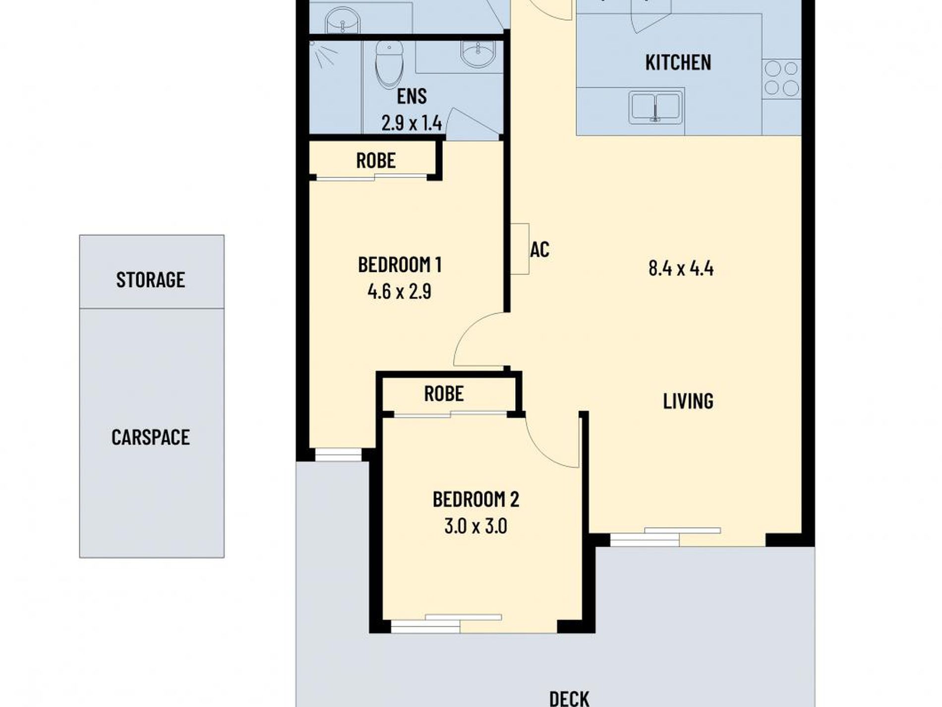 The two generous bedrooms feature built-in wardrobes, providing plenty of space for your belongings. The master bedroom boasts an ensuite, offering a touch of luxury and privacy. The second bathroom is conveniently located near the second bedroom and is perfect for guests or family members.